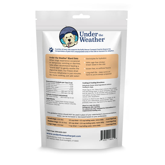 Under the Weather adds electrolytes to every bland diet pack to ensure your dog stays hydrated and gets back to feeling their best fast!